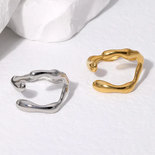 エレガントな不規則形状のボヘミアンスタイルリング、上質な18Kゴールドプレーティング付き