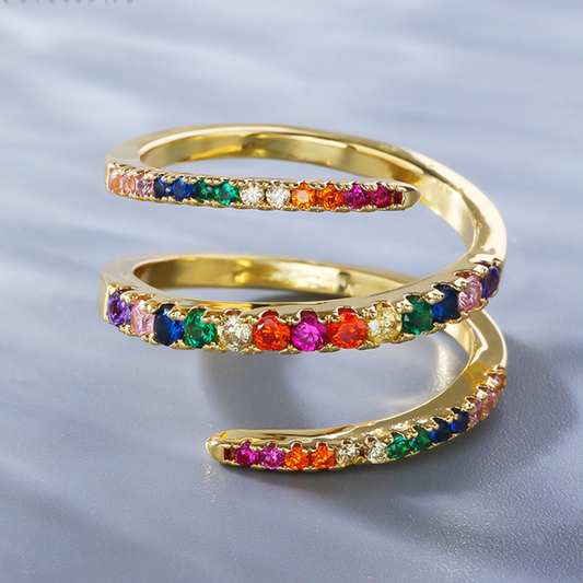 エレガントな18Kゴールドの調整可能なスパイラルリング、きらめくジルコニアストーン付き