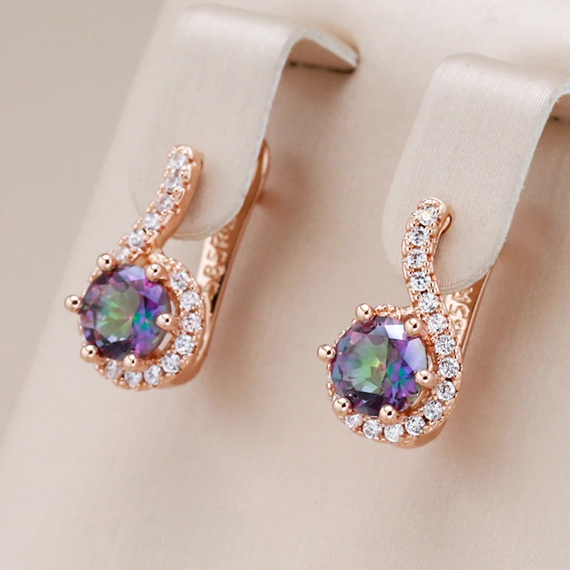 エレガントなゴールドのイヤリング、カラフルなクリスタル付き、あらゆる場面に対応