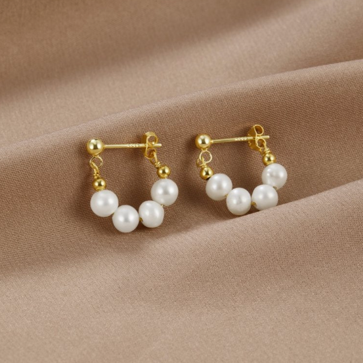 エレガントなゴールドイヤリングと魅力的な淡水パール