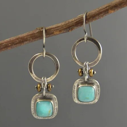 時代を超えたヴィンテージイヤリング、美しいトルコ石のインレイ付き